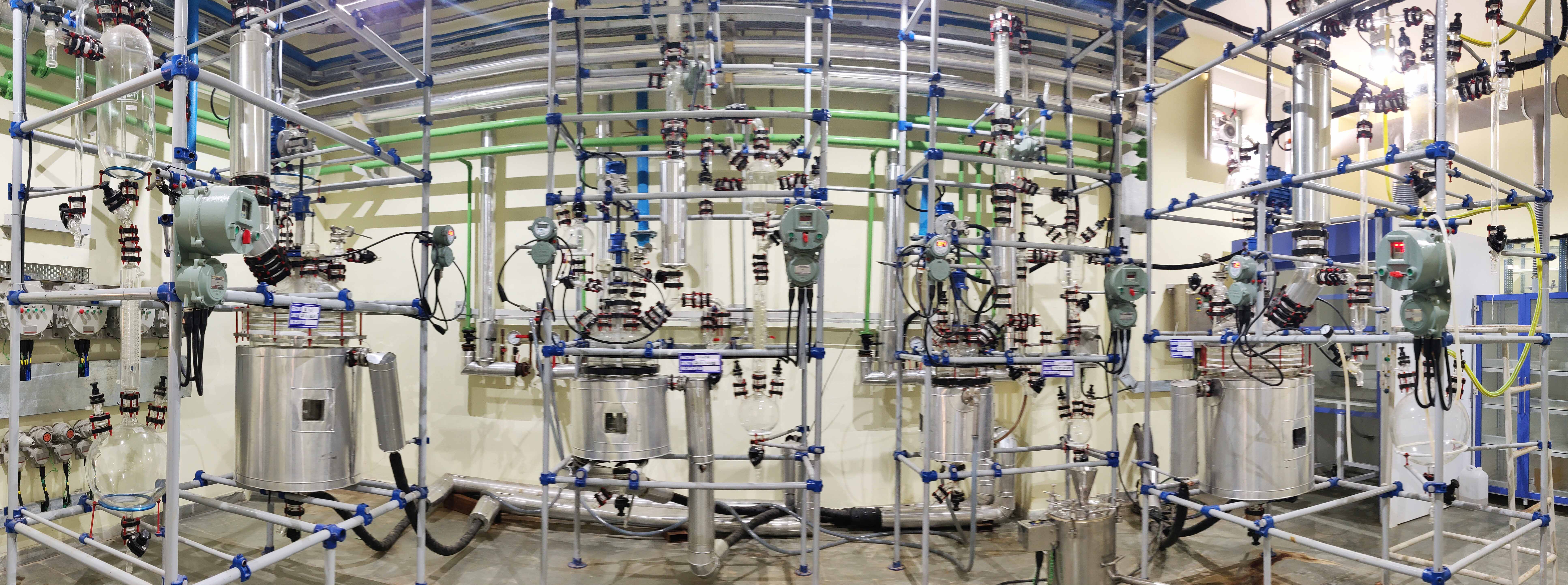 Flexible reactor set up to facilitate quick change over, ranging from 10 L to 100 L (All Glass Reactors)